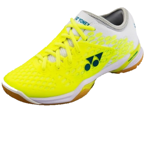 The Yonex Women's Power Cushion 03 Z Badminton Shoe features an upper designed for exceptional fit and stability. It's hard top and bottom layers absorb 30% more shock than the original Power Cushion, offering 5% greater repulsion for enhanced energy transfer. The soft middle layer rapidly returns to its original shape after impact, converting shock energy into power for quick and agile footwork.